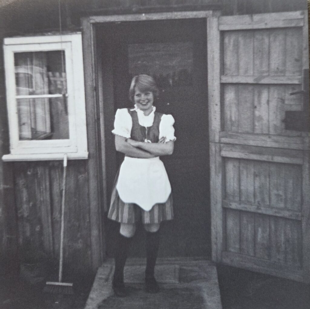 Vekas bilde er attende! Vi startar opp att med eit par bilde vi har fått frå Linda Myromslien. Ho var den siste som vart tilsett ved Veidarvon seterstue ved Toftsetra. 1976 vart den siste sesongen det var drift ved Veidarvon. Den gongen var ho berre 11 år gamal, men handterte daglege gjeremål ved seterstua, så vel som kiosksal og utanlandske turistar. Sjå vår tidlegare artikkel om Veidarvon: https://fronhistorielag.no/siste-sesong-pa-veidarvon/