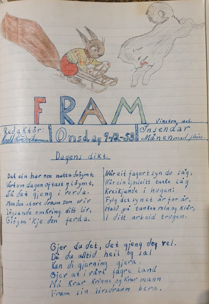Vi kjem til å publisere meir frå desse bøkene framover, men her er det stoff nok for mange artiklar til Fronsbygdin, for den som vil fordjupe seg i ungdomsrøsla. Ønskjer du å lese meir om Vinstra ungdomslag, kan du sjå Per Åsmundstads artikkel i Fronsbygdin 2023. Boka får du kjøpt hos oss, eller Norli på Vinstra.