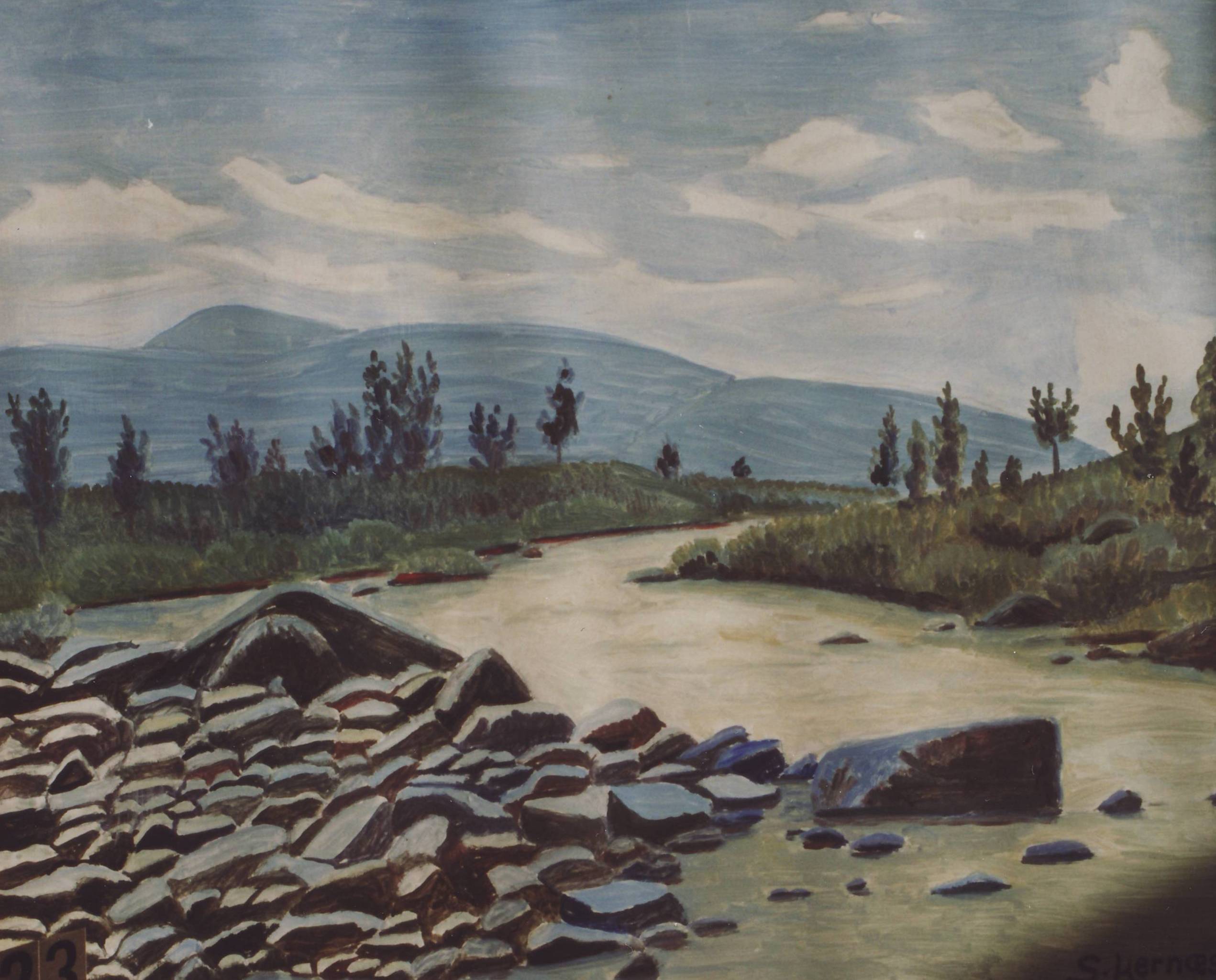 «Raggen». Elvestubben mellom Sandvatnet og Kaldfjorden, ikkje langt frå «Londbuene». Det var her denne berykta «Lundestyggen» heldt til under striden med valdrisane. Måleri av Sigmund Hernæs.
