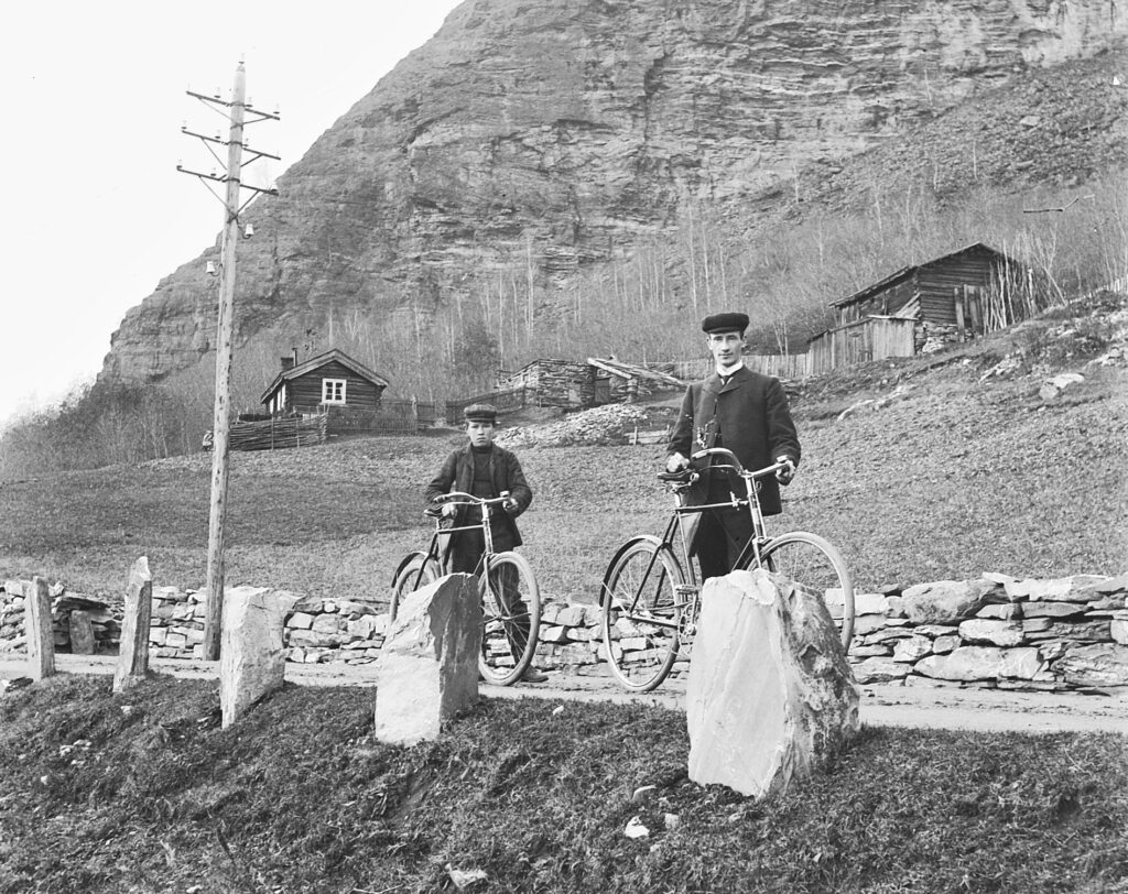 Bilde teke ved Pynten i Sødorp, som er det siste bruket langsmed Gudbrandsdalsvegen før du krysser grensa til Sør-Fron. Bildet er teke av Simen Baardseth med sjølvutløsar. Ser ein godt etter, ser ein utløsersnora som Baardseth held i høgre handa. Guten til venstre er ukjend.