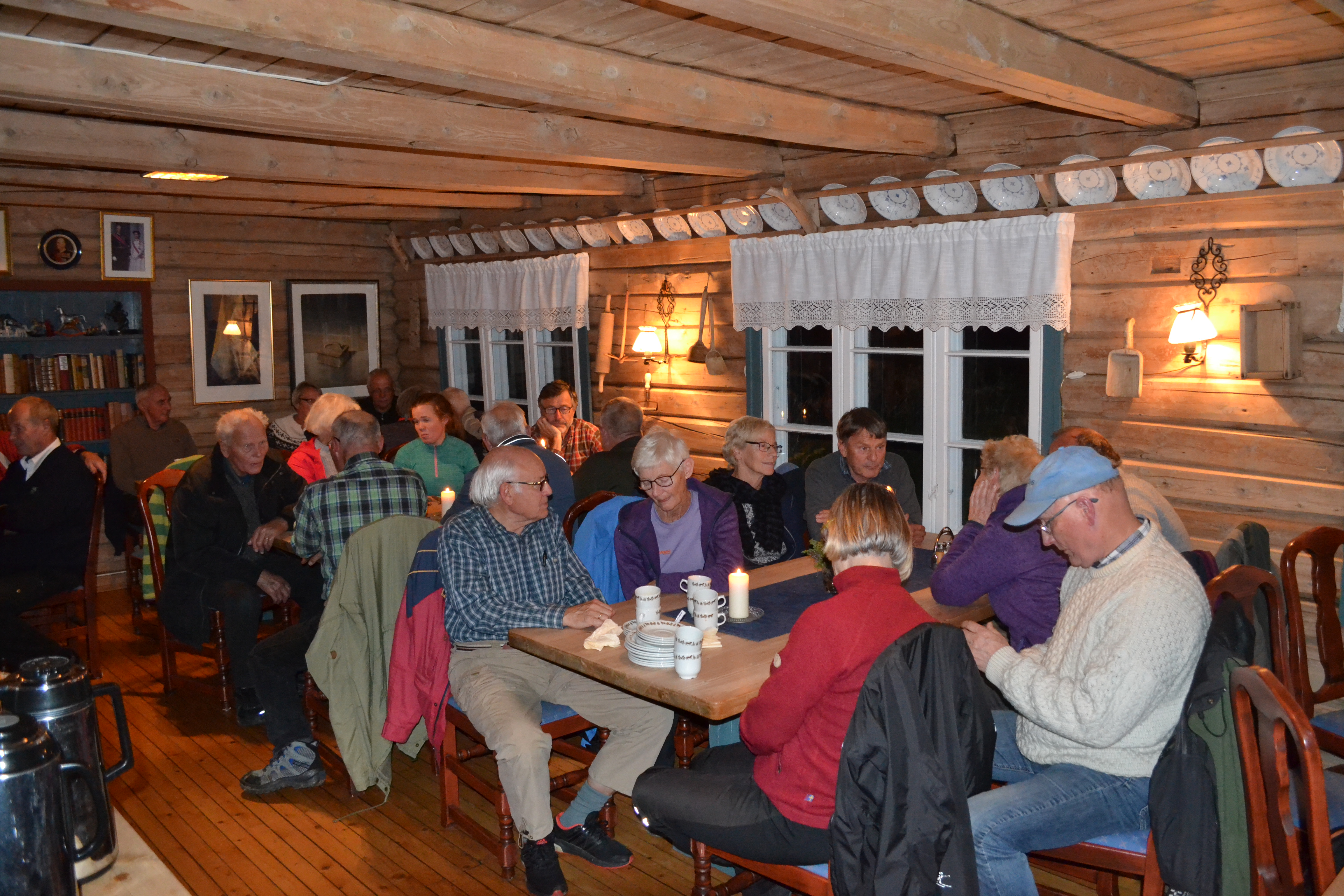 Etter orienteringa ved Olstappen, gjekk turen til Slangen Seter, der Anita Stebergløkken venta med nykokt kaffi og kjempegod kringle. Olaug Aas (Askheim) f. 1931 og ektemannen hadde køyrt eins ærend frå Ås i Akershus for å vere med på denne turen. Ho voks opp på den idylliske plassen Elvenes ved almenningssaga, ein plass som vart borte som følgje av reguleringa på 1950-talet. Olaug er dotter til den fyrste almenningsbestyraren i 1922, Ola Askheim. Under kaffien fortalde ho litt om livet på Elvenes. Etterpå fortalde Ole Chr. Risdal om historia til Slangen Seter, før turen gjekk nedover til Vinstra att. Det verka som alle var einige om at det hadde vore ein givande kveld!
